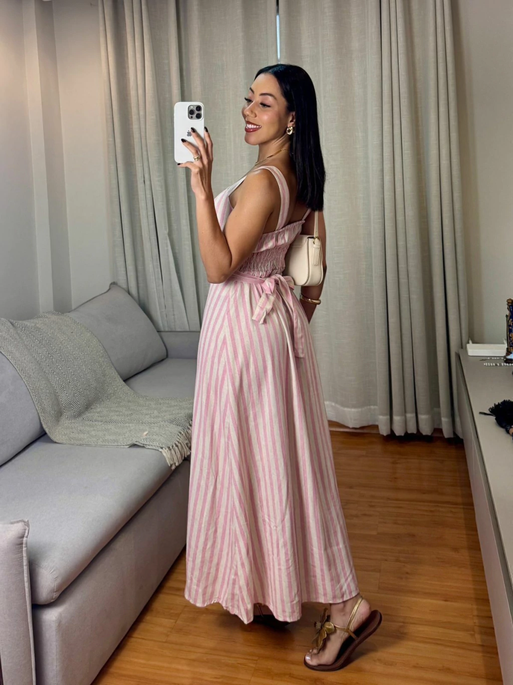 Vestido longo todo em tecido linho. Pensa no vestido com cara de riqueza e de uma qualidade surreal! Elegante, chique e atemporal são as palavras chaves desse look. Com corte perfeito e que nunca deixará de ser chique. E o melhor, peça única, colocou está pronta, é aquele look que onde chegar irá ser elogiada e chamará atenção possitivamente. Não fica transparente .Veste desde o 36 até o 42 tranquilamente. Possui bojo elástico nas costas.