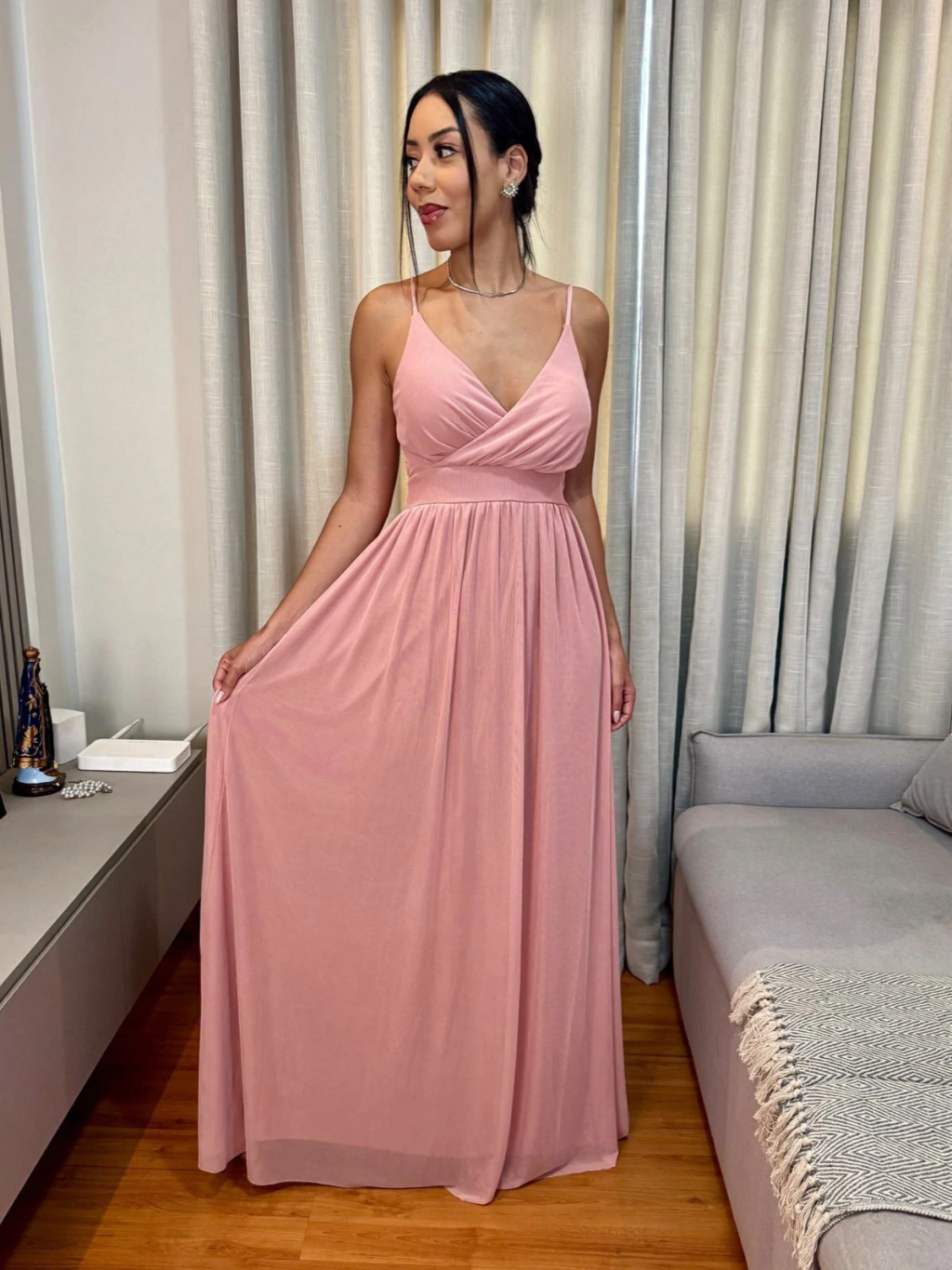 Modelo de vestido para madrinha de casamento e festas formais longo maravilhoso, qualidade surreal, todo em crepe com tule, ou seja extremamente confortável e o melhor, não amarrota e não encolhe. Bem amplo e fluido, possui regulagem na alça e bojo, e claro forro. É aquele look que colocou e está pronta pra arrasar. Possui elasticidade na cintura, o que faz a peça se ajustar em qualquer tipo de corpo tranquilamente, além de ser em corte laser o que facilita em caso de necessidade de corte em qualquer costureira de sua confiança!!