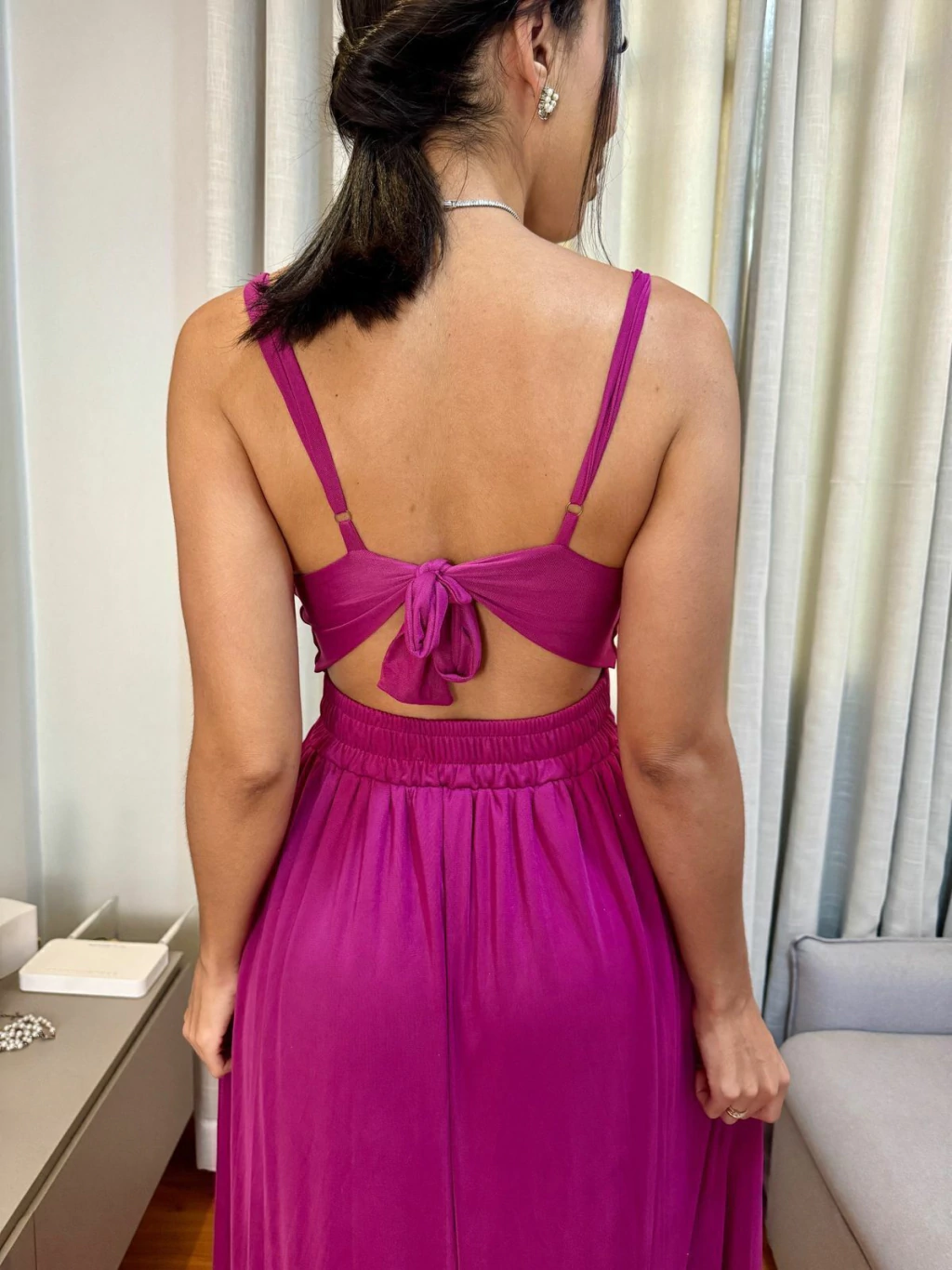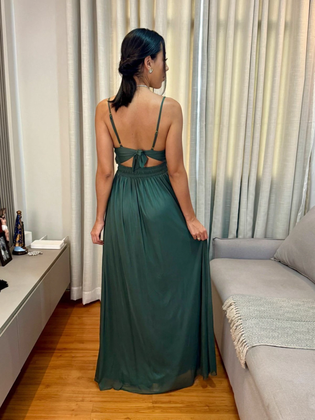 Vestido mede 1,85 (Da ponta da alça até a barra) Podendo variar um pouco de acordo com como você ira ajustar à alça! Já tivemos clientes de 1,86 que compraram e não ficou mostrando o pé :) Bem como clientes baixinhas que arrasaram também, pois, como já é corte laser basta simplesmente cortar com a tesoura :)